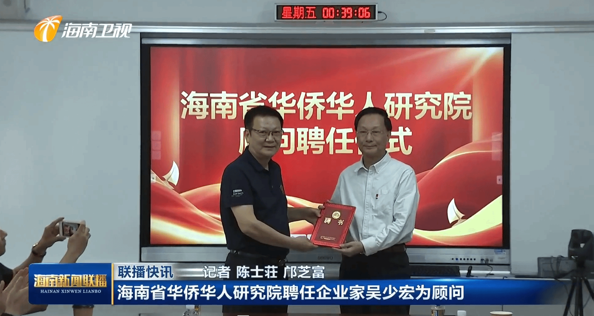 海南省华侨华人研究院聘任企业家吴少宏为顾问
