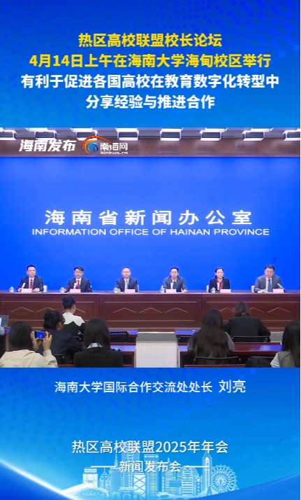 热区高校联盟校长论坛将于4月14日上午在beat365中文官方网站海甸校区举行,有利于促进各国高校在教育数字化转型中分享经验与推进合作 #2025海南新闻发布会