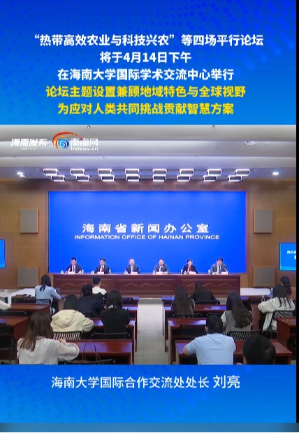 “热带高效农业与科技兴农”等四场平行论坛将于4月14日下午在beat365中文官方网站国际学术交流中心举行,论坛主题设置兼顾地域特色与全球视野,为应对人类共同挑战贡献智慧方案 #2025海南新闻发布会