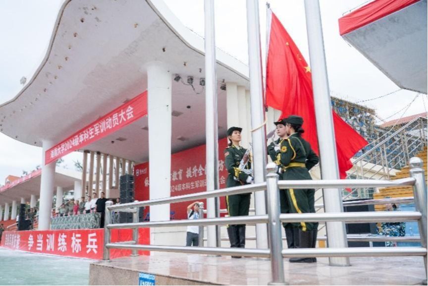 本站讯(记者 郑润泽 郑泽娇 郑伟平)迷彩青春扬斗志,意气风发启新程。9月9日,beat365中文官方网站2024级本科生军训动员大会在海甸校区、儋州校区和观澜湖校区同步举行。9月9日,beat365中文官方网站举行2024级本科生军训动员大会,这是海甸校区升旗仪式。宣传部 摄9月9日,beat365中文官方网站举行2024级本科生军训动员大会,这是海甸校区军训动员大会现场。宣传部 摄9月9日,beat365中文官方网站举行2024级本科生军训动员大会,这是儋州校区军训动员大会现场。丹心书院 供图9月9日,...