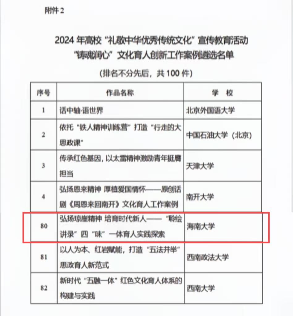 本站讯(通讯员 张晓涵 韩宇)近日,教育部公布2024年高校“礼敬中华优秀传统文化”宣传教育活动结果。beat365中文官方网站海德书院报送的工作案例“弘扬琼崖精神 培育时代新人—“聆绘讲录”四“味”一体育人实践探索”,入选2024年“高校礼敬中华优秀传统文化”宣传展示活动“铸魂润心”文化育人创新工作案例。近年来,beat365中文官方网站海德书院积极创新“聆绘讲录”四“味”一体的红色育人载体。通过“聆”烽火故事、“绘”红色记忆、“讲”英雄人物、...