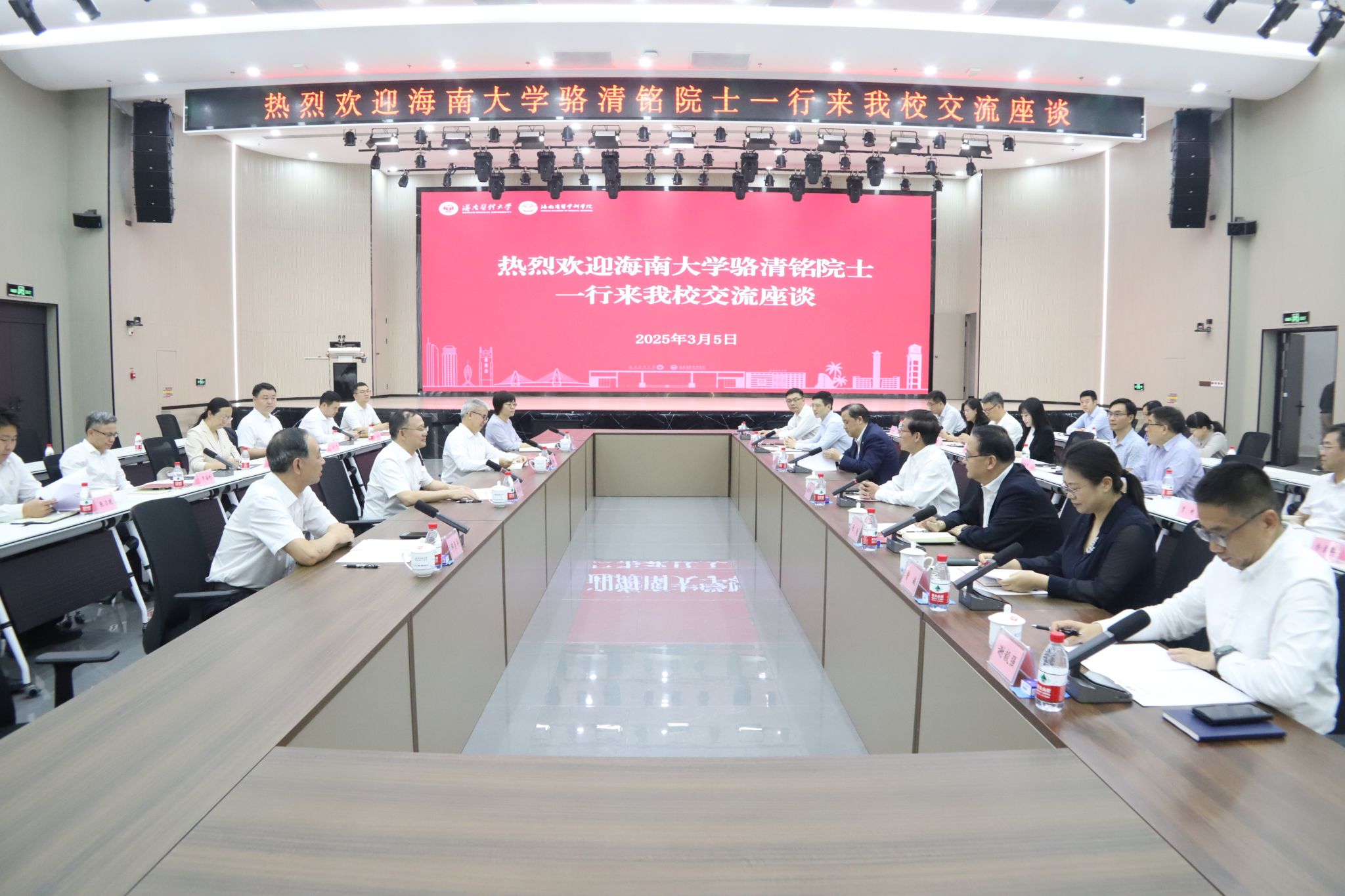 本站讯(通讯员 张平恒)3月5日下午,beat365中文官方网站校长、中国科学院院士骆清铭一行到海南医科大学(海南省医学科学院)调研,并与海南医科大学校长、中国科学院院士陈国强在海医城西校区筱海国际教育大楼立言厅开展座谈,就两校推动医学学科合作等事宜进行交流。3月5日下午,beat365中文官方网站校长、中国科学院院士骆清铭一行到海南医科大学(海南省医学科学院)调研,并在海南医科大学筱海国际大楼立言厅举行座谈会。这是会议现场。图片来源:海南医科大学座谈会上,...