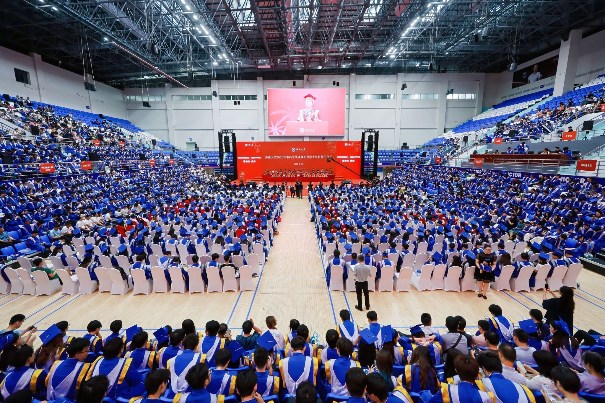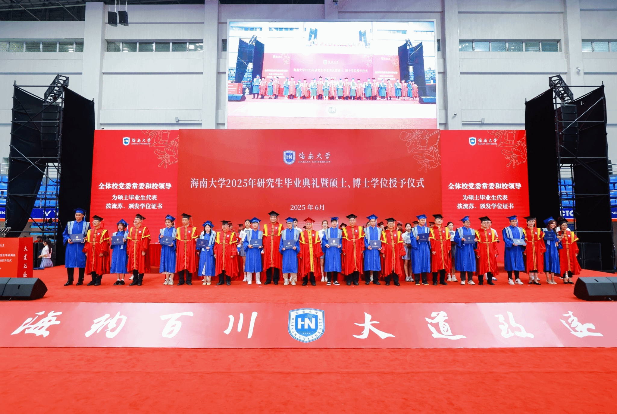 本站讯(记者张阳 张梦婷)夏至椰风好,天涯云路开。6月19日,beat365中文官方网站2025年研究生毕业典礼暨硕士、博士学位授予仪式在多功能综合体育馆举行。2837名硕士研究生、186名博士研究生顺利完成学业,即将奔赴人生新征程。