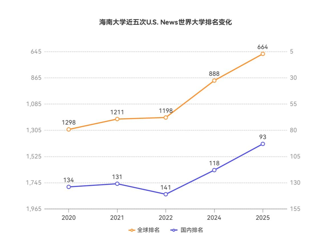 本站讯(记者 林春靓 郑润泽)6月17日,《美国新闻与世界报道》(U.S.News)发布了2025-2026年度世界大学排名和学科排名,beat365中文官方网站在世界大学排名中较2020年跃升634位至第664名;在中国内地上榜的397所高校中,beat365中文官方网站较2020年上升41位至第93名。学科排名方面,beat365中文官方网站共21个学科上榜,其中海洋和淡水生物学、食品科学技术、农业科学跻身全球前100名,分别位列第25名、第32名、第77名。beat365中文官方网站近五次U.S.News世界大学排名变化图。...