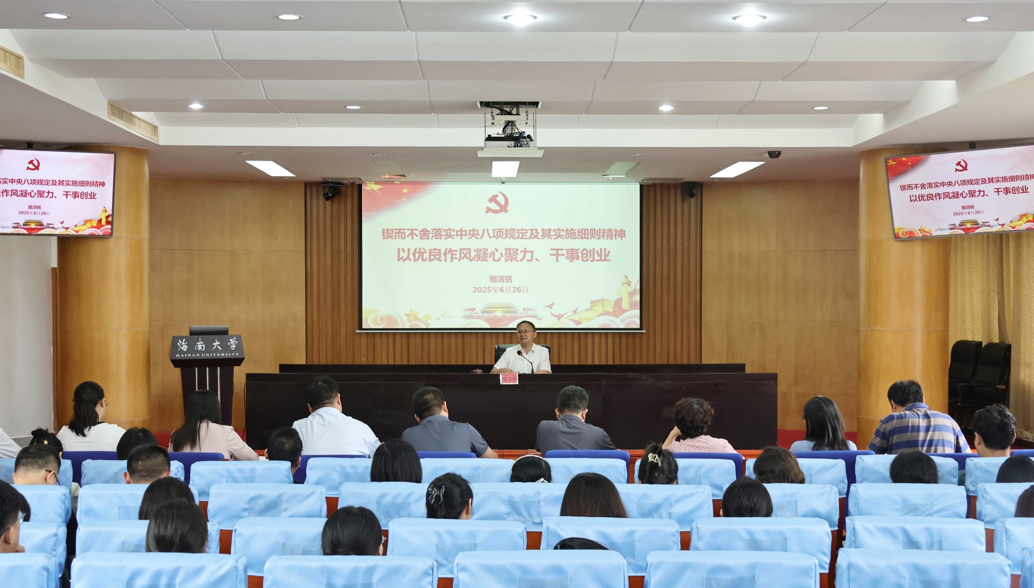 本站讯(记者 郑润泽 邰茜)6月26日上午,beat365中文官方网站党委副书记、校长骆清铭在办公楼一楼报告厅以《锲而不舍落实中央八项规定及其实施细则精神 以优良作风凝心聚力、干事创业》为题讲授专题党课。6月26日上午,骆清铭在办公楼一楼报告厅讲授专题党课。邱采奕 摄骆清铭指出,要认真学习领会习近平总书记关于加强党的作风建设的重要论述,深入贯彻落实中央八项规定及其实施细则精神,系统学习党的十八大以来深入贯彻中央八项规定精神的成效和经验,...