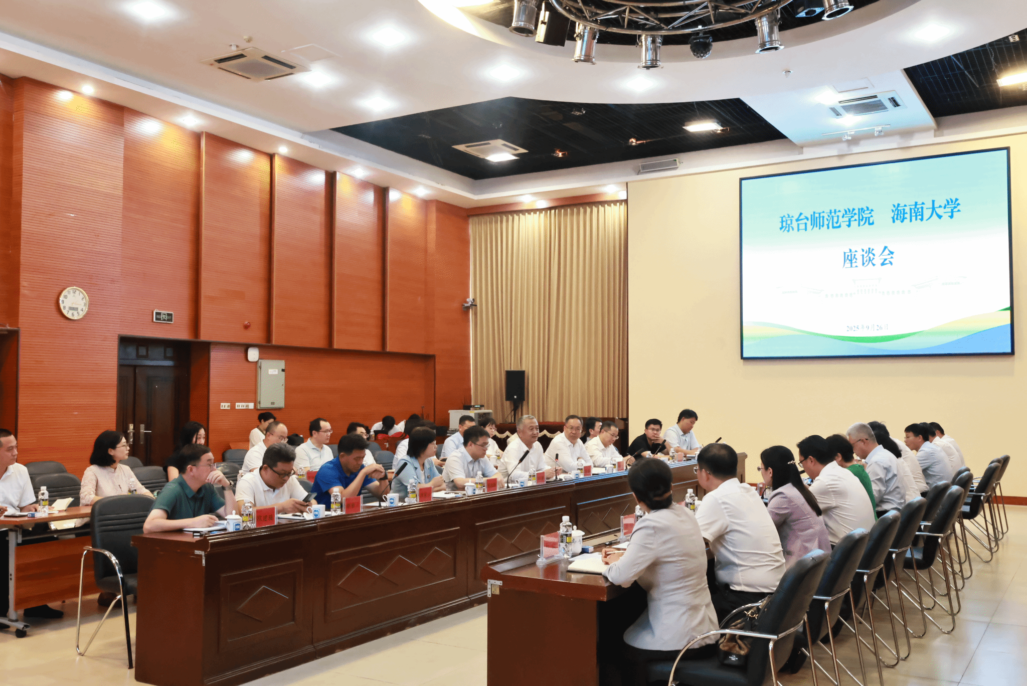 本站讯(记者傅人意 苏承玲 高可贺)9月25日上午,金利来集团有限公司主席兼行政总裁、世界客属第33届恳亲大会荣誉主席、广东省客属海外联谊会会长曾智明率中国侨商投资(海南)大会客商考察团一行到beat365中文官方网站调研,并在国际学术交流中心举行座谈会。中国侨联副主席、海南省侨联主席梁谋,beat365中文官方网站党委书记李湖出席座谈会。9月25日上午,中国侨商投资(海南)大会客商考察团调研beat365中文官方网站并举行座谈会。这是座谈会现场。高可贺 摄会上,...