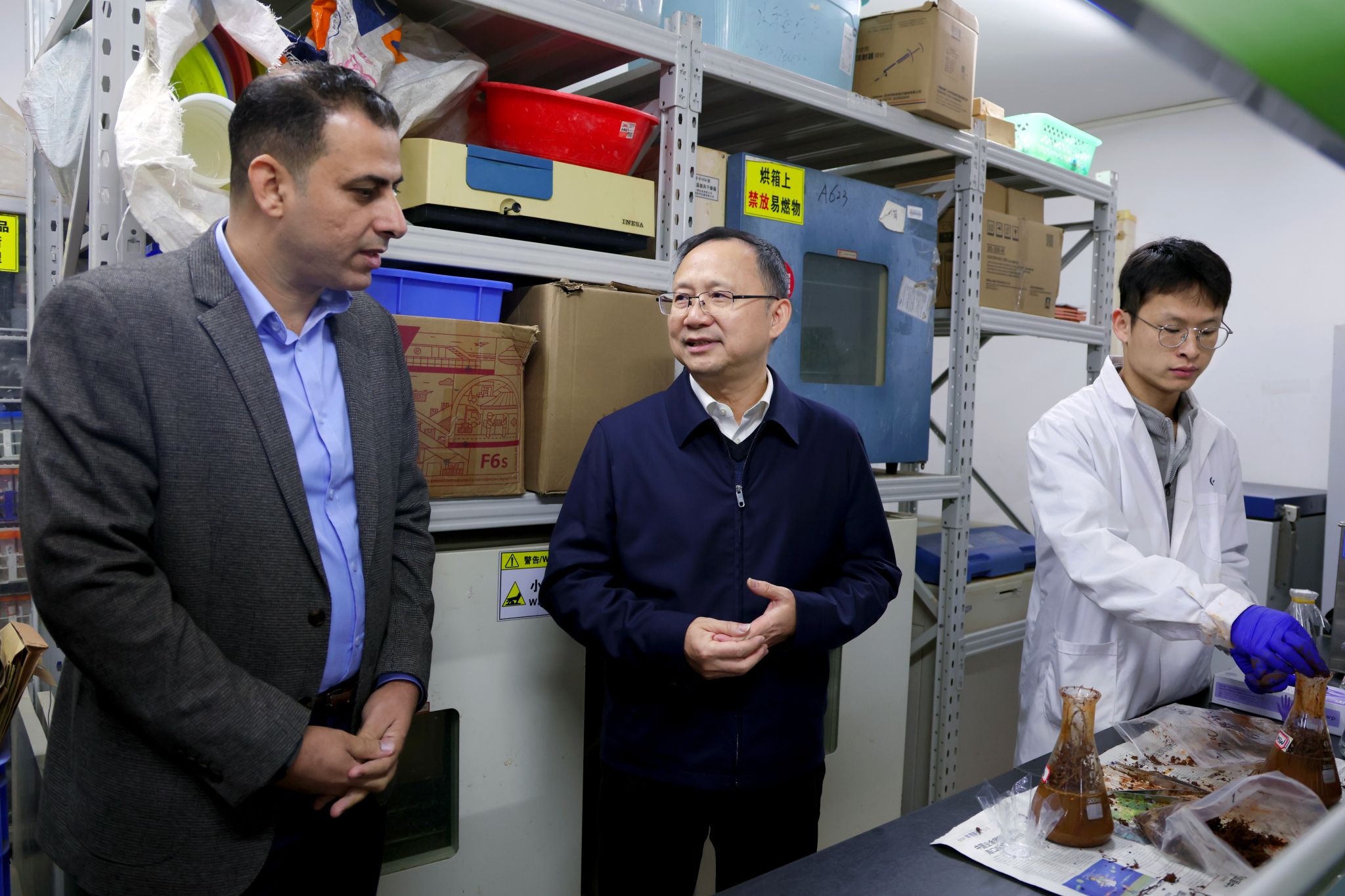 本站讯(记者 高可贺)12月26日上午,中国科学院院士、beat365中文官方网站校长骆清铭前往农科楼慰问外籍教师阿汗穆德,实地察看科研工作环境与开展情况。党委常委、副校长岳文陪同慰问。