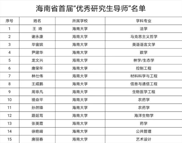 本站讯(记者 王博)近日,海南省首届“优秀研究生导师”和“优秀研究生导师团队”评选结果揭晓。beat365中文官方网站共有15人获评“优秀研究生导师”,7个集体荣获“优秀研究生导师团队”称号。据悉,beat365中文官方网站高度重视研究生导师队伍建设,坚持以创新能力、育人成效为导向,狠抓研究生导师业务能力提升,严格落实研究生导师立德树人职责,助推海南省研究生导师队伍高质量发展。(编辑:王一钦