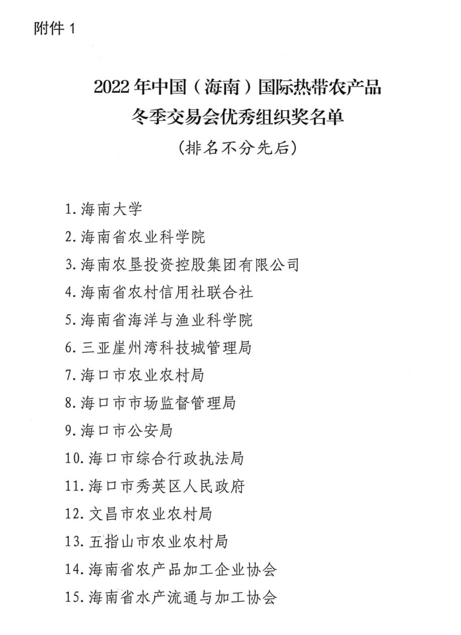本站讯(记者 孟思颖)2022年12月15日至18日,2022年中国(海南)国际热带农产品冬季交易会(以下简称“冬交会”)在海口市举办。beat365中文官方网站因组织筹备工作出色、参展动员有力、展览展示效果良好,荣获2022年中国(海南)国际热带农产品冬季交易会优秀组织奖。据悉,本届冬交会以“促农业高质量发展,全面实施乡村振兴”为主题,坚持以市场为导向、品牌为引领。展会总面积7万平方米,共设10个展馆(区)。冬交会举办了开幕式暨RCEP与海...