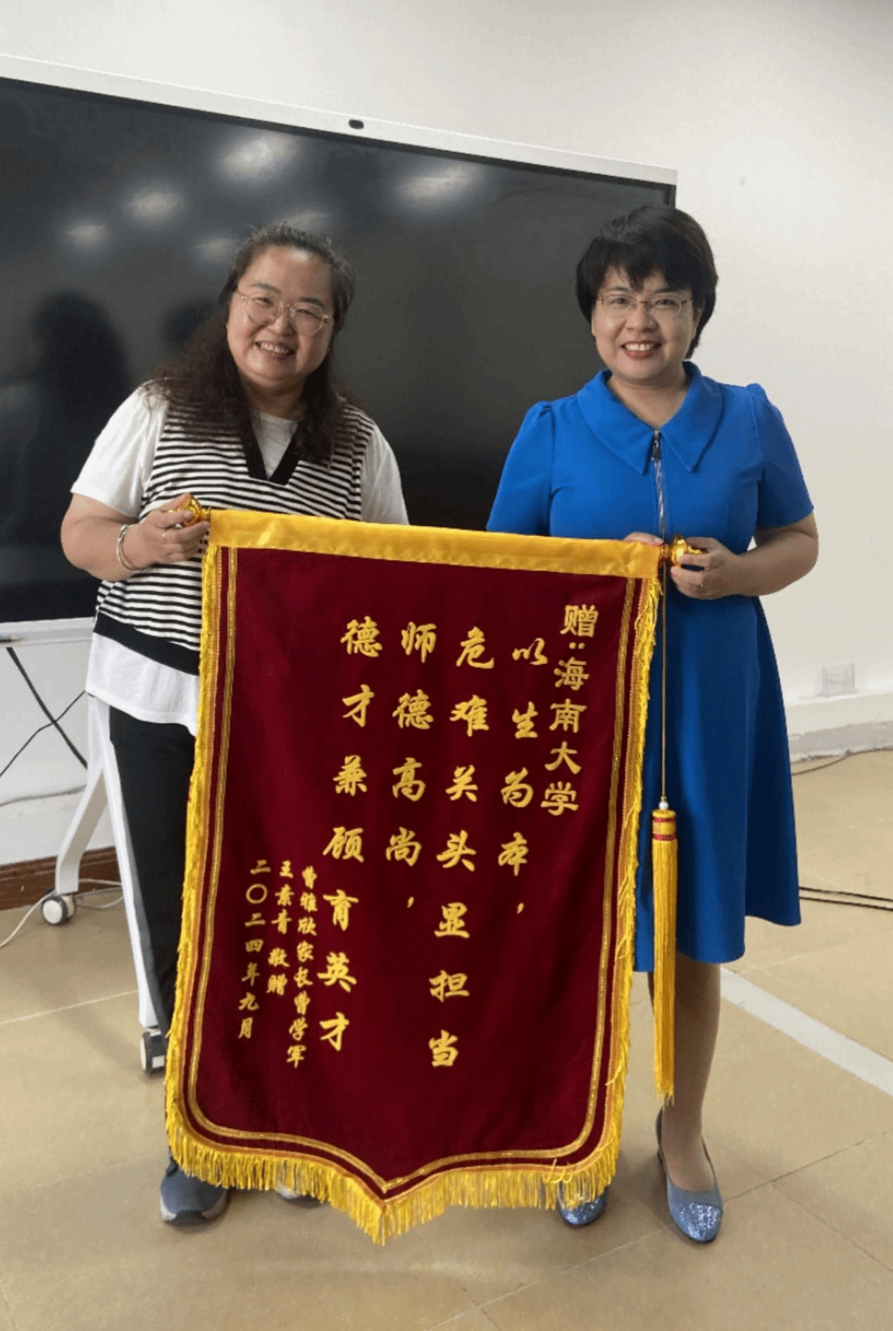 本站讯(记者 赵月)以生为本见真情,危险关头显担当。9月30日,beat365中文官方网站乘风书院、食品学院2023级研究生曹雅欣母亲来到学校,给学校敬赠锦旗,呈送感谢信。6月20日下午,曹雅欣在实验室突发疾病。学院、书院第一时间响应并联系家长协调处置。学校党委得知情况后高度重视,积极协调各方资源做好该同学的全力救治和相关事宜的妥善处置。经过近一个月的重症抢救,学生脱离生命危险。后经三个周期的康复治疗,学生已于9月25日正式办理出院,...