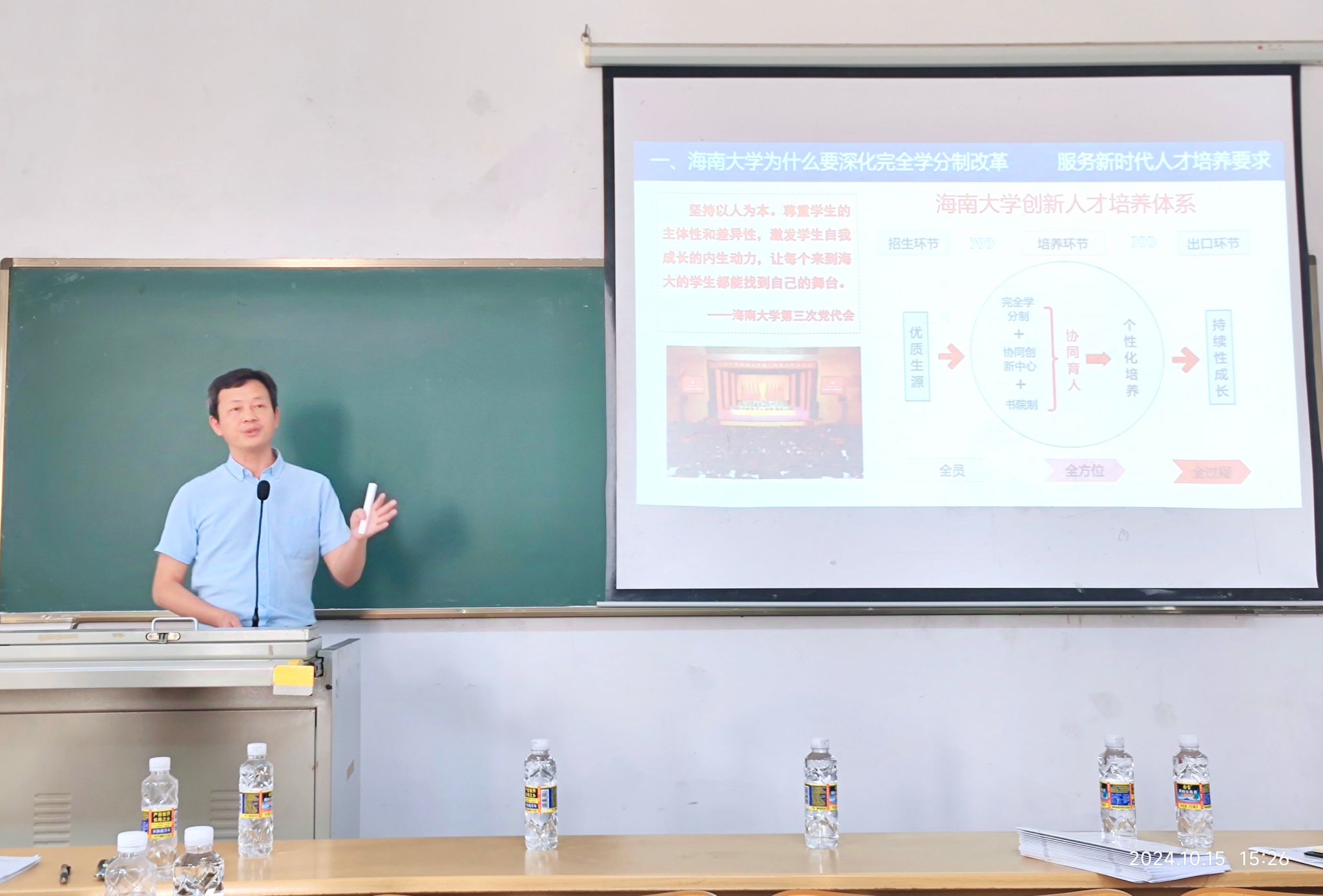 本站讯(通讯员 郑虹)为贯彻落实学校深化完全学分制改革实施方案,准确把握以学生为中心的教育理念,强化新时代高水平教师队伍建设,2024年10月15日下午,计算机科学与技术学院在二号教学楼106教室召开深化完全学分制改革实施方案宣讲会。学院党委书记王红英、副院长(主持行政工作)张清辰、程杰仁、叶春杨、白晓东等领导班子成员和全体教职工参加会议。会议由张清辰主持,刘华中主讲,教务处副处长赵银梅、教务处教研科张乔莅临现场指导交流。...