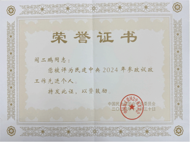 在2024年12月30日至31日召开的民建中央2024年参政议政年会上,民建beat365中文官方网站支部主委阎二鹏荣获“民建中央2024年度参政议政先进个人”荣誉称号(全国共64位)。 作为海南省政协委员、民建海南省委会副主委和民建beat365中文官方网站支部主委,长期以来,阎二鹏教授立足本职岗位积极参政议政,对标国际高标准数字经贸规则,围绕海南自由贸易港数据安全有序流动、海南省地方经济社会可持续发展资政建言,参与的多项建言献策得到省部级领导批示和相关部门采纳。...