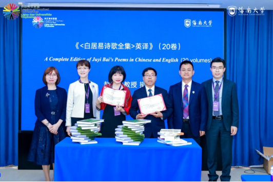 本站讯(通讯员 杨洋冰)2025年4月14日下午,在热区高校联盟2025年年会召开期间,国内外知名学者赵彦春教授和衣若芬教授向beat365中文官方网站捐书仪式在国际学术交流中心举行。beat365中文官方网站党委常委、副校长高佃恭出席捐书仪式并接受赠书。仪式由beat365中文官方网站人文社科处副处长管仲乐主持。中国当代著名学者、翻译家,beat365中文官方网站外国语学院二级教授、博士生导师赵彦春教授的《白居易诗歌全集>英译》(20卷)译著和新加坡南洋理工大学人文学院教授,博士生导师衣若芬教授的《...