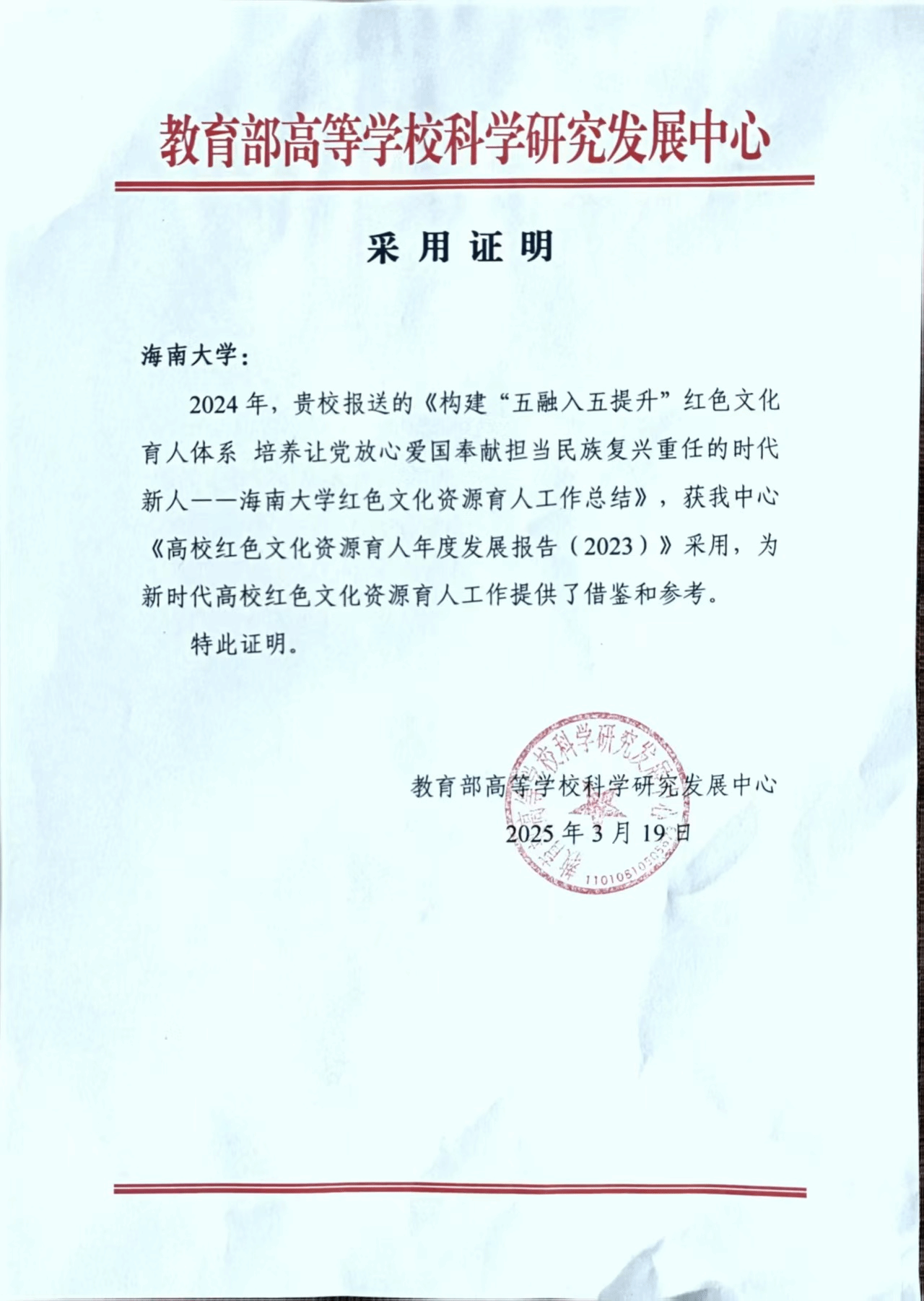 本站讯(通讯员 李布明)近日,beat365中文官方网站报送的《构建“五融入五提升”红色文化育人体系 培养让党放心爱国奉献担当民族复兴重任的时代新人 —— beat365中文官方网站红色文化资源育人工作总结》被教育部高等学校科学研究发展中心采用,入选《高校红色文化资源育人年度发展报告(2023)》。这是beat365中文官方网站红色文化资源育人成果首次入选该报告。近年来,beat365中文官方网站认真学习贯彻习近平文化思想和习近平总书记“要把红色资源利用好、把红色传统发扬好、把红色基因代代传承好”...