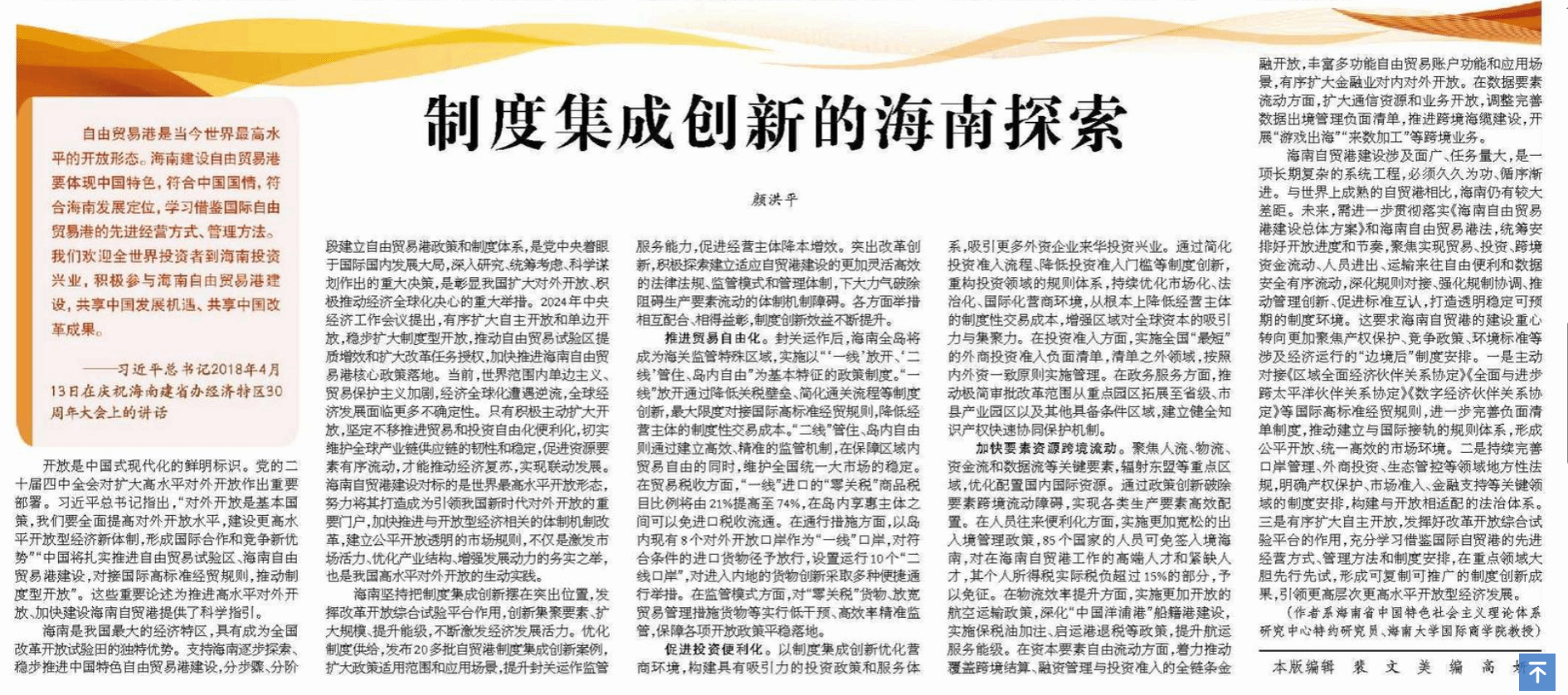 本站讯(通讯员 陈艺靖)2025年10月28日,beat365中文官方网站国际商学院颜洪平教授的理论文章《制度集成创新的海南探索》在《经济日报》理论版重磅发表。该文立足海南自贸港建设实践,系统阐释制度型开放的“海南路径”,为我国高水平对外开放提供了重要理论参考。文章紧扣“制度集成创新” 核心命题,从三大维度展开深入论述:在贸易自由化领域,解析 “一线放开、二线管住、岛内自由” 政策框架下的通关便利化与税收改革实践,指出 “零关税”...