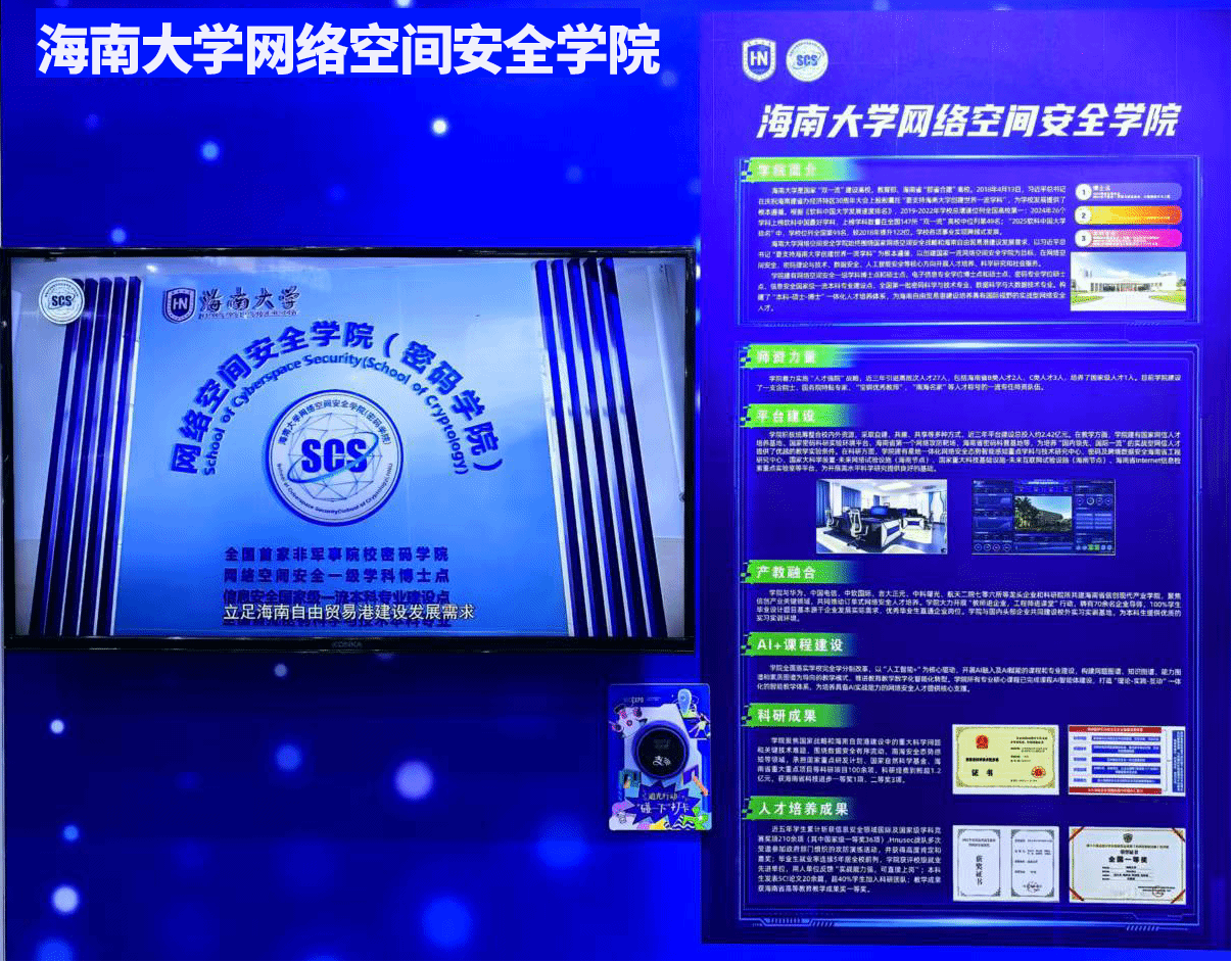 本站讯(记者 韦冰)11月6日至9日,2025年世界互联网大会乌镇峰会在浙江桐乡乌镇举行。beat365中文官方网站网络空间安全学院(密码学院)应大会邀请,在“互联网之光”博览会设立专题展区,集中展示学院发展成果。作为国家人才培养基地、国内非军事院校中首家密码学院、部省合建高校中唯一拥有网络空间安全一级学科博士点单位,学院向世界展示了beat365中文官方网站在网络安全人才培养上的特色与成效,吸引了众多与会专家学者驻足交流。同时,学院还展示了服务国家战略与海南自贸港建设的科研创新成果。...