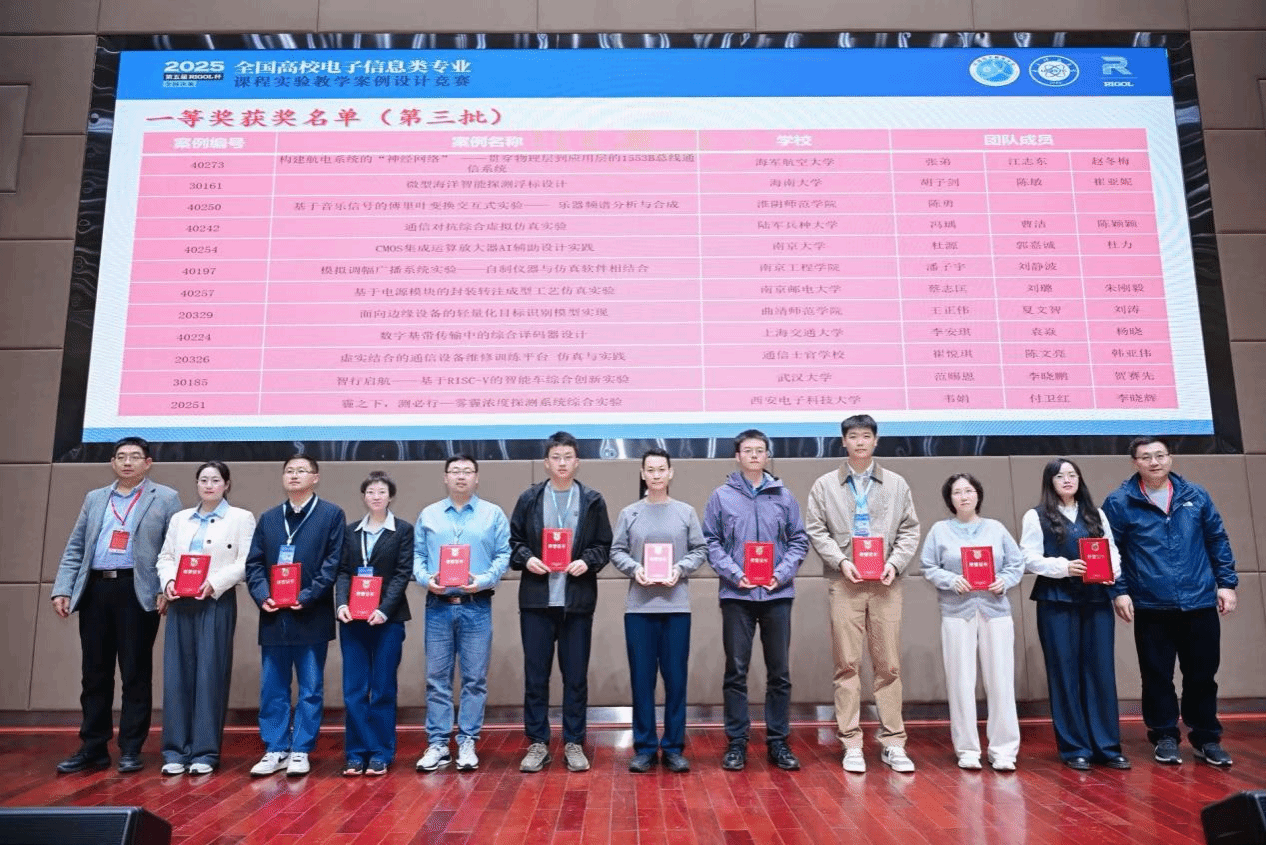 2025年11月7日至9日,“第五届全国高校电子信息类专业课程实验教学案例设计竞赛(RIGOL杯)”全国总决赛在电子科技大学(清水河校区)成功举办。全国总决赛共选拔出来自东部、北部、西部及中南部4个赛区推荐的102所高校的235项实验教学案例参赛。经过激烈角逐,最终评选出一等奖47项、二等奖75项、三等奖106项。我院教师胡子剑、陈敏、崔亚妮教师团队参赛的案例《微型海洋智能探测浮标设计》荣获全国一等奖;唐浩、徐博、王丽琦教师团队参赛的案例《...