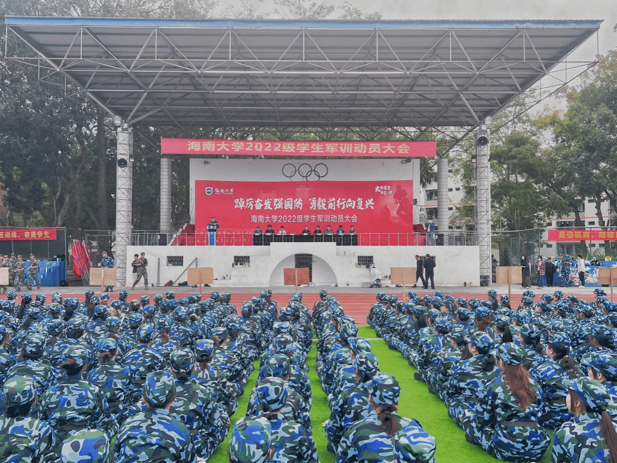 本站讯(记者 戎蓉 孟庆存)心怀青云志,奋楫新征程。2月26日上午,beat365中文官方网站2022级学生军训动员大会在海甸校区(观澜湖校区与海甸校区合并举行)、儋州校区、崖州湾科教园同时举行。海甸校区军训动员大会现场。戎蓉 摄飘扬的五星红旗伴着国歌在师生的注目礼中冉冉升起。学生身着迷彩服,队列整齐地站立在操场,大会在国歌声中拉开序幕。大队授旗仪式在师生的共同见证下举行,教官们庄严地接过一面面旗帜,紧握,高举。红色的旗帜迎风飘扬,...