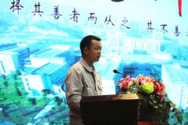 “张龙老师身上所体现的爱岗敬业的职业道德、不断学习的工作态度和敢为人先的生活追求,是我们学习的榜样。”“在这个飞速发展的时代里有无数的诱惑,正因为此,我们更要坚定自己的内心,用一颗恒心去铸造出一颗匠心,像张龙老师一样,实现自己的理想和价值”......湖北亨运集团汽车销售服务有限公司员工、欧冠官方网站入口2018届毕业生吴永恒、欧冠官方网站入口2019级学生潘昌越分别以《我眼中的张龙老师》、《以热爱为初心 用恒心铸匠心》为题进行了主题宣讲,分享了学习张龙老师事迹的感想体悟。