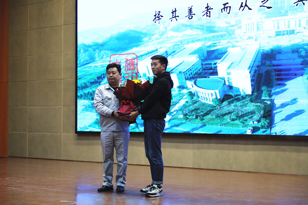 张龙向师生作题为《胸怀“匠”心 躬身实干》的宣讲报告。他结合近20年在汽车维修领域的工作经历,从“热爱方能变苦为乐、苦中作乐”“学习促进不断成长、不断进步”“用心与顾客成为亲人朋友”“感恩是最重要的人生品质”“坚守成就自己的人生价值”五个方面讲述了自己对爱岗敬业和工匠精神的认识和体会。他热爱并坚守自己的职业,刻苦钻研维修知识,努力提高维修技能,通过努力从一名普通的劳动者成长为亨运集团技术创新和高技能人才培养的骨干和带头人,成为十堰汽车维修行业的领军人物。张龙老师以实际行动诠释了爱岗敬业的真谛。