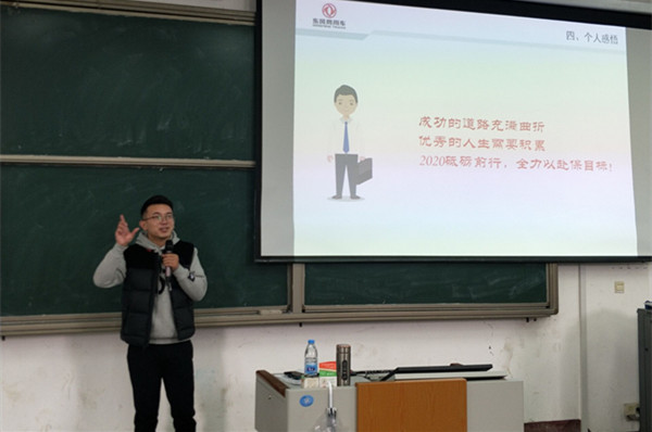 交流会邀请了东风特色订单班2015届毕业生、原东风物流集团股份有限公司KD系系长、现任马来西亚知名上市公司J&T express MalaysiaIE中方经理的王逸博。王逸博从学习、工作、生活等角度介绍了自己的成长经历,从宏观角度介绍了专业,帮助学弟学妹进行学业和职业规划,使大家对专业、学业、职业有了更深刻的理解。