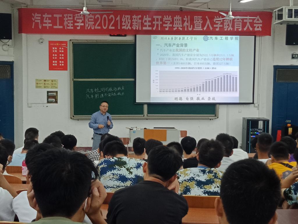 学院党总支书记张玲致欢迎词,她对2021级新同学们提出殷切的希望,希望同学们学会主动适应、学会自我管理、学会交流沟通、担当作为,回报社会,并表达了学校对全体同学的深切关爱和热烈欢迎。院长张健从汽车产业背景、汽车发展趋势、欧冠官方网站入口专业概述及建设规划等方面给同学们做了详细的介绍,鼓励同学们要热爱专业、勤学苦练、学有所长。副院长余元强针对同学们感兴趣的五个特色订单班的设置、教学、就业等方面进行了专题讲解,希望同学们结合兴趣理想选好特色专业、学好专技特长。各专业负责人从本专业的课程设置、知识结构、技能水平、就业优势等方面,全面向同学介绍了各专业的发展方向和职业规划,引导同学们了解专业、热爱专业、学好专业。下午,2021级新生辅导员分别为新生做了适应性教育及疫情防控专题提醒。