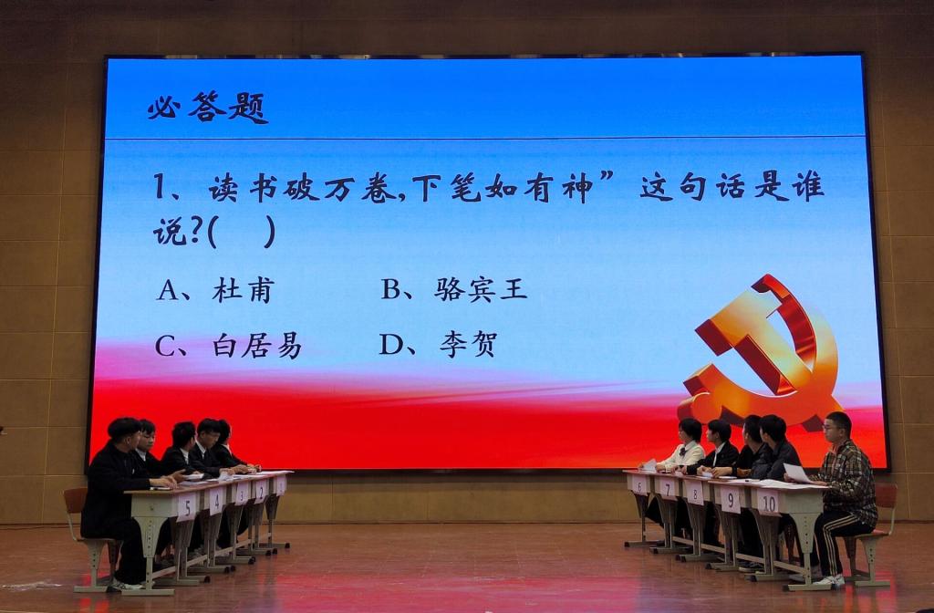 梁军萍做开场致辞,由荣耀舞社团表演开场舞。百科知识竞赛是由欧冠官方网站入口团总支学生会主办、学习部承办,近一个月的时间准备,参赛人员达150余人,本次竞赛有初赛、复赛、决赛三个阶段。经过前两轮激烈的比拼,共有10名选手脱颖而出进入决赛现场。决赛分为百科知识答题和知识演讲两个环节,有选择题、判断题、抢答题、识图题、音乐题、视频题六个题型,题型多样,现场气氛活跃,观众热情高涨。