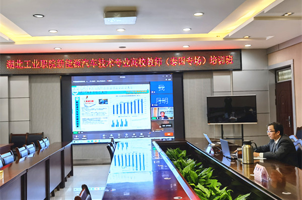 开班仪式后,教务处副处长赵艳杰以欧冠官网为例,讲解了《新能源汽车技术专业的建设和管理》。赵艳杰从石油危机、碳达峰碳中和、清洁能源所引发的汽车发展趋势和学校特色、产业背景、人才需求所要求的高职院校需要为地方经济社会发展服务两个方面,阐述了新能源汽车技术专业建设背景,并重点介绍了教学标准制定、课程体系构建、人才培养方案制定、专业条件建设、校企合作等专业建设方法和相关g管理过程。