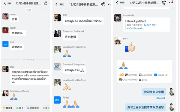 两位授课教师丰富的专业积累、生动的示范讲解和干练的授课风采给泰国参训教师留下了深刻的印象,引发了课后学习交流群的热烈讨论,激发了他们投身新能源汽车技术专业建设的愿望和到中国、到欧冠官方网站入口继续交流学习的热情。