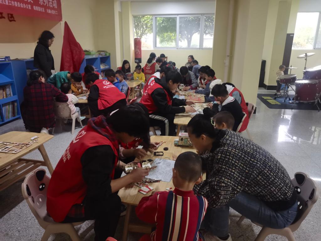 活动中志愿者们一边为小朋友介绍汽车模型的基本构造,一边手把手地指导他们进行模型拼装。每完成一个汽车结构的组建,志愿者们都会讲解相应结构的作用。整个过程中,既锻炼了小朋友们的专注力,提高了他们的动手能力,也让小朋友对汽车结构产生了基本的认知,激发了他们踊跃参与的兴趣。最终在志愿者和小朋友们的共同努力下,一辆辆模型小客车、小吉普、小跑车在他们手上诞生。