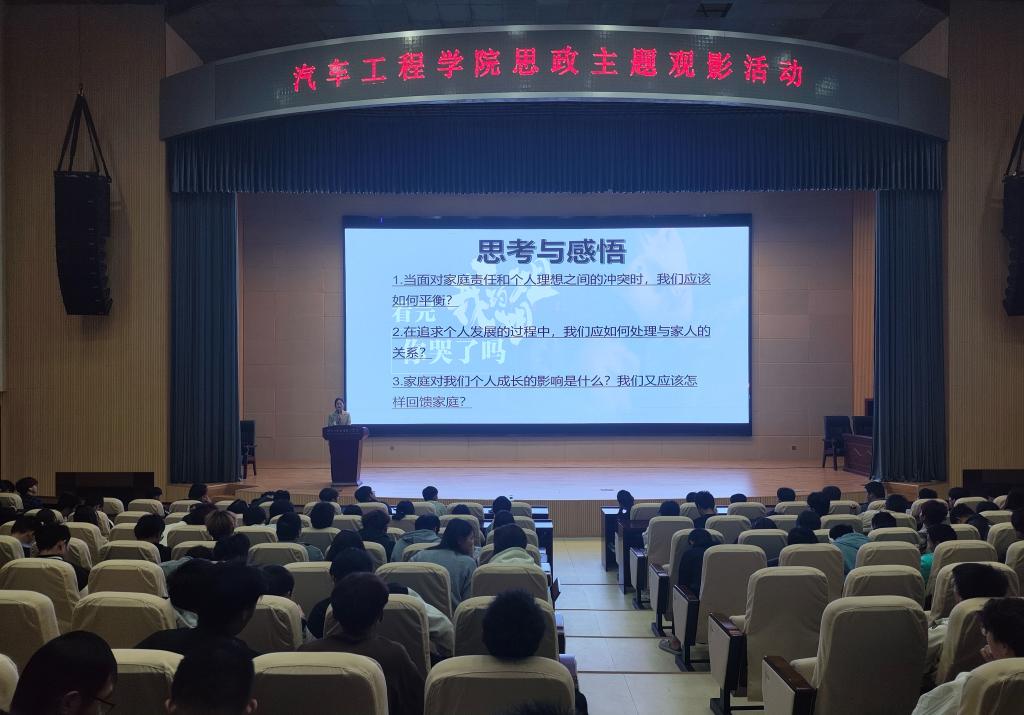 活动开始前,叶丹丹老师引导学生们带着三个思考问题进入影片世界:“当面对家庭责任和个人理想之间的冲突时,我们应该如何平衡?”、“在追求个人发展的过程中,我们应如何处理与家人的关系?”、“家庭对我们个人成长的影响是什么?我们又应该怎样回馈家庭?”。这些问题不仅让同学们更加投入地观看电影,也为之后的讨论环节打下了坚实的基础。