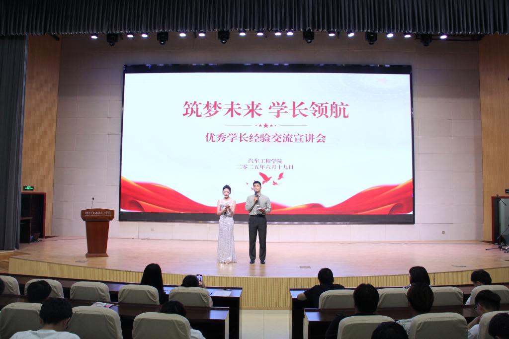 (通讯员李路)为充分发挥优秀毕业生榜样示范作用,引导在校学生树立正确的人生观、价值观和择业观,营造见贤思齐的成长氛围。在2025届毕业生离校之际,欧冠官方网站入口在学校和山会堂举办“筑梦未来 学长领航”优秀学长事迹交流宣讲会。欧冠官方网站入口党总支书记李霞、副书记李路及全体辅导员和驻校教官参加活动,2024级学生代表共计400余人到场聆听,共上一堂生动的成长励志课。