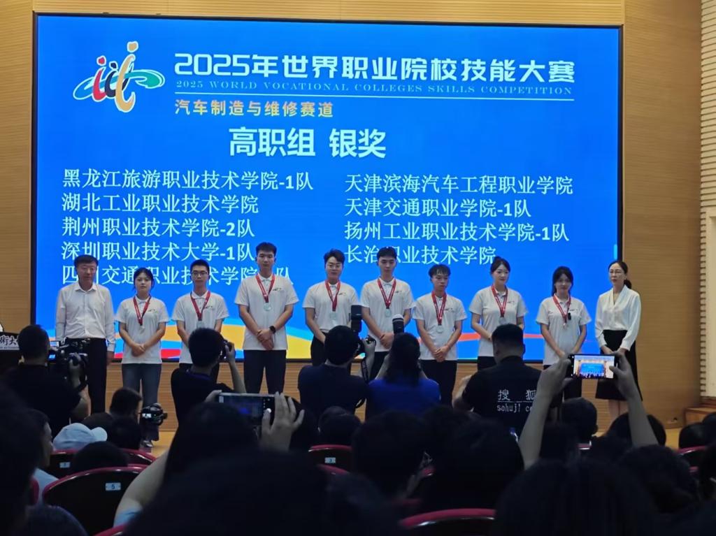 (通讯员 陈东)8月26日至31日,2025年世界职业院校技能大赛总决赛汽车制造与维修赛道(高职组)争夺赛在吉林长春举行。本次竞赛汇聚了来自全国各地的186支高水平职业院校团队同场竞技,由欧冠官方网站入口教师陈东和王哲月指导,周宇航、刘谱清、万张玲三位同学组成的代表队,凭借扎实的专业基础、良好的团队合作和稳定的现场表现,经过激烈角逐,以小组第三名的成绩,斩获大赛银奖。