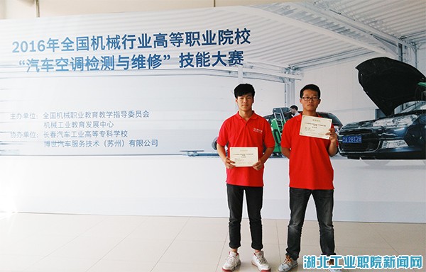 (通讯员 刘德涛 陈林)为进一步探索产教深度融合与发展新机制,搭建竞技与交流平台,提高人才培养质量,6月1日至2日,在长春举办的“2016年全国机械行业高等职业院校‘汽车空调检测与维修’技能大赛”,经过2天激烈角逐,圆满落幕。比赛中,欧冠官网2名参赛选手——2014级中德实验班王涛、徐浩翔同学以扎实的知识、精湛的技术,在众多参赛队中脱颖而出,获得1个二等奖和1个三等奖,为学院争得了荣誉。