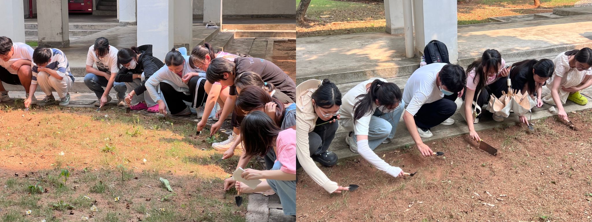 在五一劳动节来临之际,2024年4月30日,南海书院于10栋一层绿地开展了花卉种植劳动实践活动。共有60余名学生积极参与其中,共同体验了种植劳动的乐趣与不易。