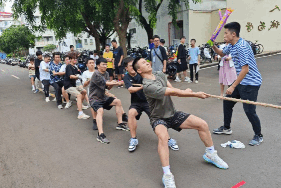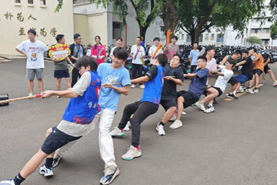 本届体育文化节包括趣味运动项目(5个)和球类运动项目(3个)。开幕式后,首先进行的是“集中力量办大事——拔河比赛”,共有11个班级组队参加。参赛选手们都信心满满、团结协作,赛场上欢呼声、加油声、呐喊声此起彼伏,充分展现出朴诚学子无限的青春活力。