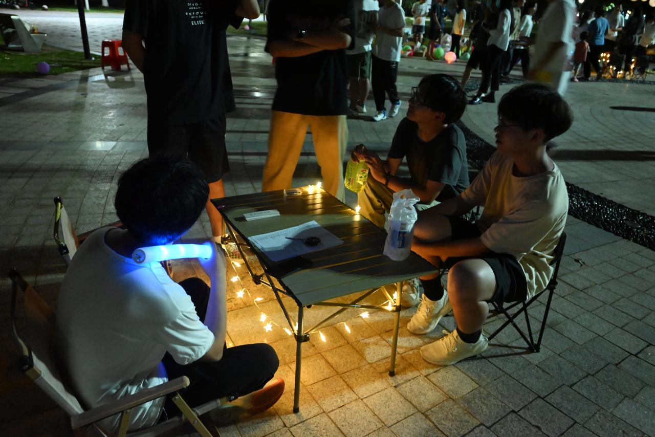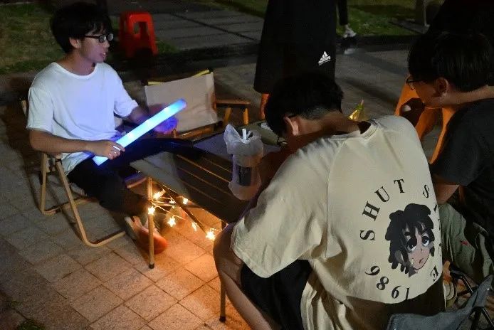 晚风轻柔,闲来静处,且将诗酒猖狂。在这里,凤箫声动,玉壶光转,在这里,月满人间,诗情挥洒。赏灯节接近尾声,同学们仍然余兴未尽。一张张小木桌挂起星星小灯,灯光柔和了同学们的脸庞,也点亮了心中的诗情。