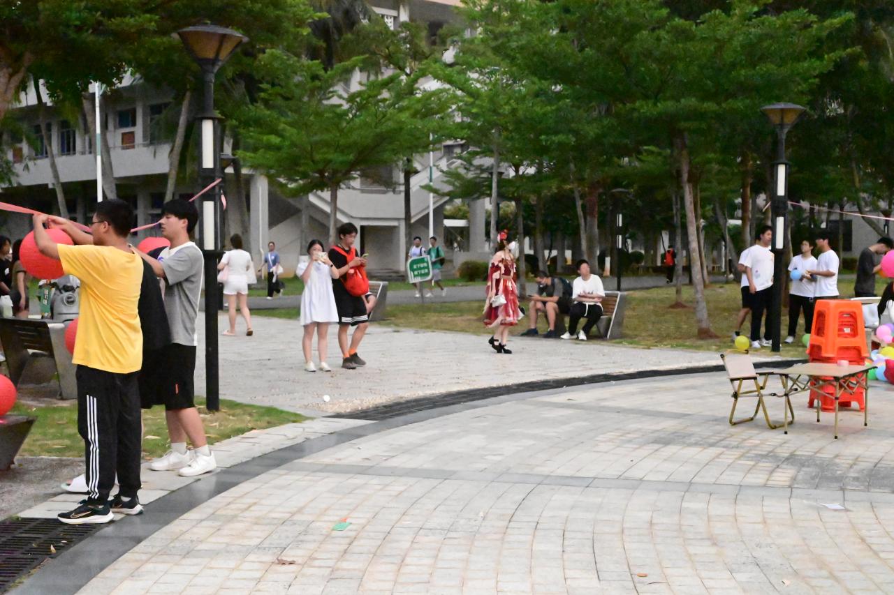 盏盏花灯流泻,缕缕盈袖暗香,花灯随风飘摇,此番美景吸引着不少同学前来游玩,各个游戏区总是人满欢笑,灯会顺利开展。
