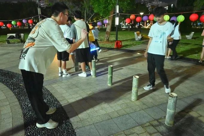 古人宴饮,盛行投壶,以箭投壶,中多者胜。经过长期的发展,增加了不少娱乐性。在本次灯会中,投壶为单人游戏,在规定区域摆上竹壶,投中后会有一张小纸条,对出纸条上诗词者为胜者。