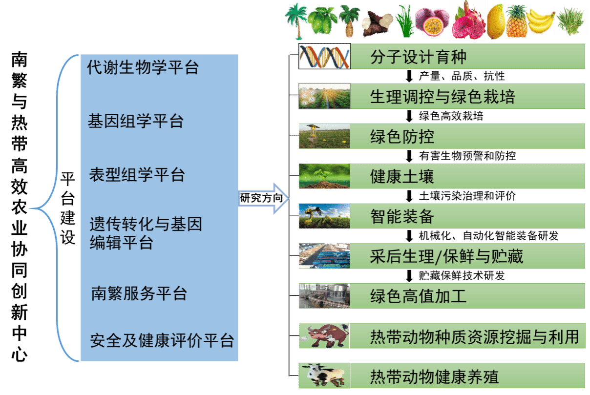 中心聚焦南繁与热带高效农业全产业链中存在的重大科学问题与工程技术难题,开展南繁与生物育种、农业机械化、耕地保护、病虫害防控、栽培与耕作、农产品加工等研究,支撑种业安全、地方经济和乡村振兴。