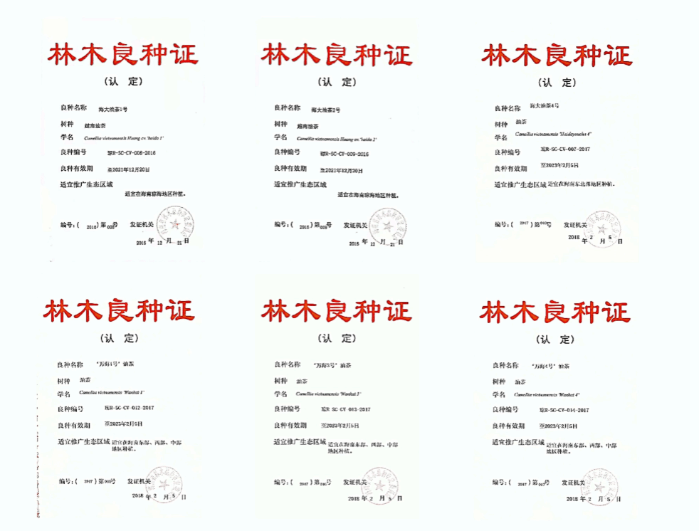 选育了“海大2号”、“海大4号”等油茶良苗,在海南 11个市县推广面积3万亩。