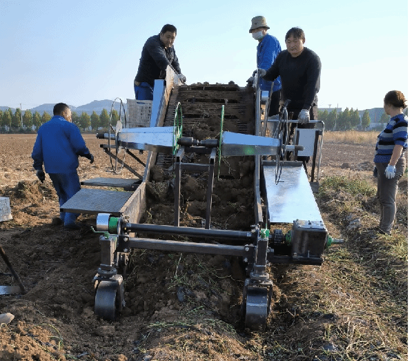 自主研发的甘薯移栽机减少因挖掘精度不稳定而造成的伤薯,解决了甘薯在挖掘后输送过程中因高度落差导致的破损。目前在海南进行了批量销售,并且还销往山东、内蒙古、新疆等多个地区,推进了国内甘薯种植机械化进程。