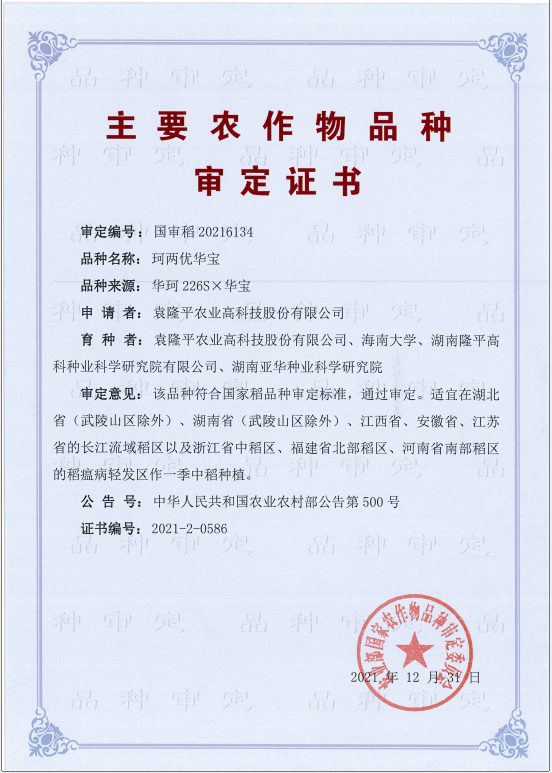 培育了“振两优华宝”(国审稻20216211)、“珂两优华宝”(国审稻20216134)等10余个水稻新品种。