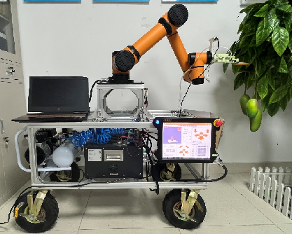 芒果采收机器人,识别成功率: 98.4% ,采摘成功率: 95.8% ,果实损伤率低。