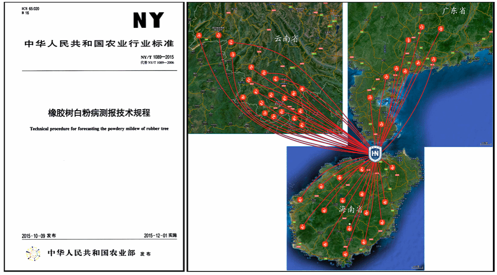 建立了以白粉病为主的橡胶树病虫害监测预报网络,监控面积覆盖我国60%的植胶区。