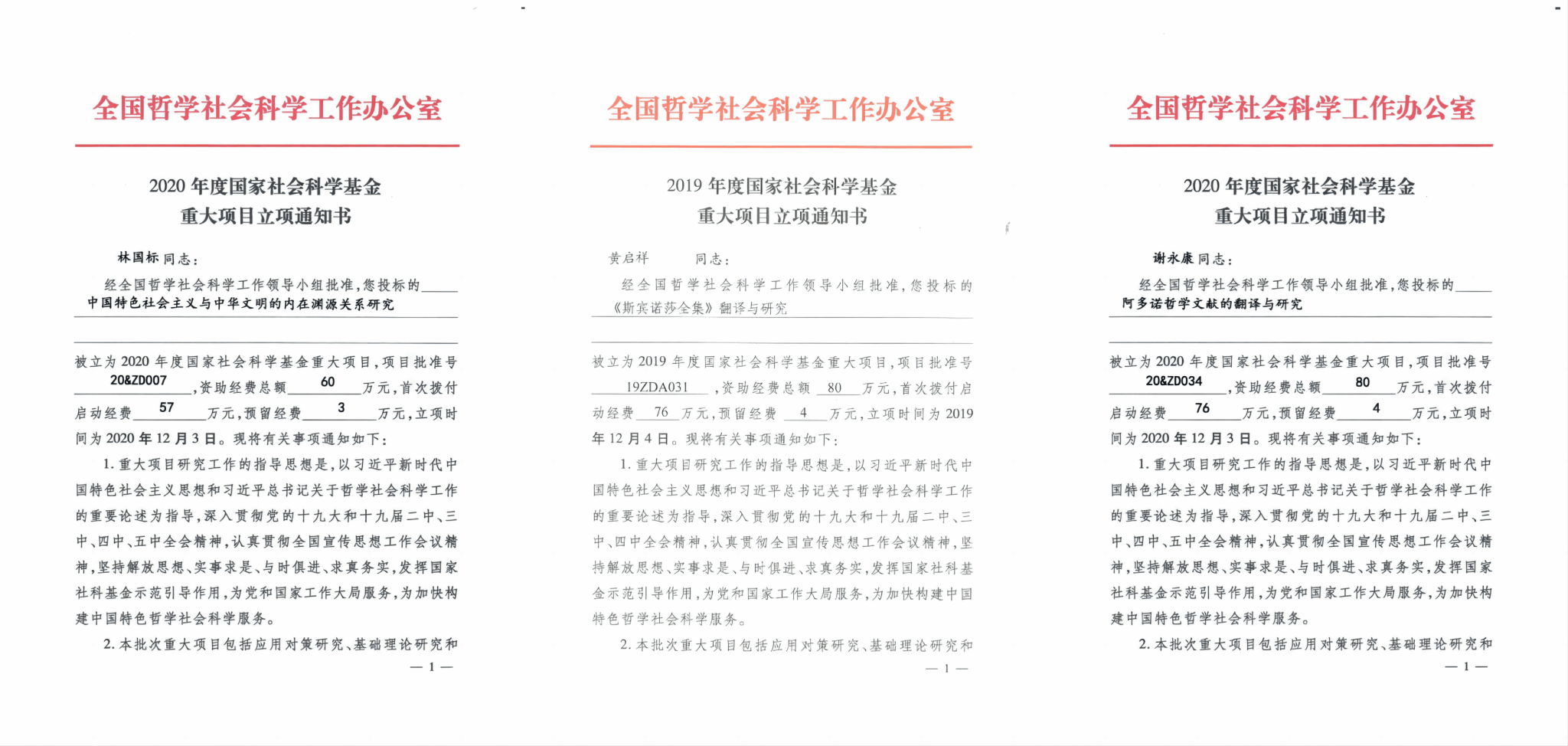 立项国家级项目68项,其中国家社科基金重大项目7项。获得省部级以上奖励107项,其中省部级一等奖19项;入选2022年度《国家哲学社会科学成果文库》1项,获“安子介国际贸易研究奖”1项;获得省部级以上领导批示46项。
