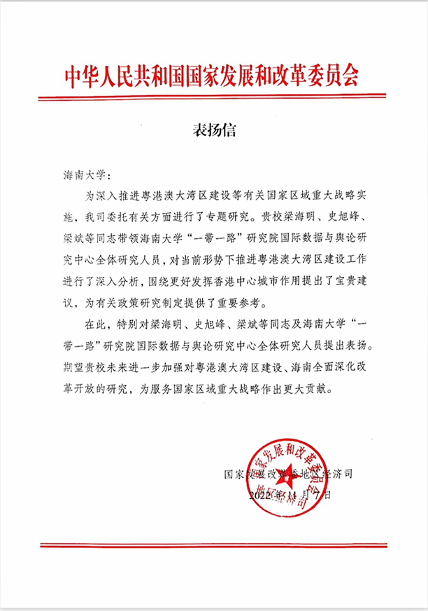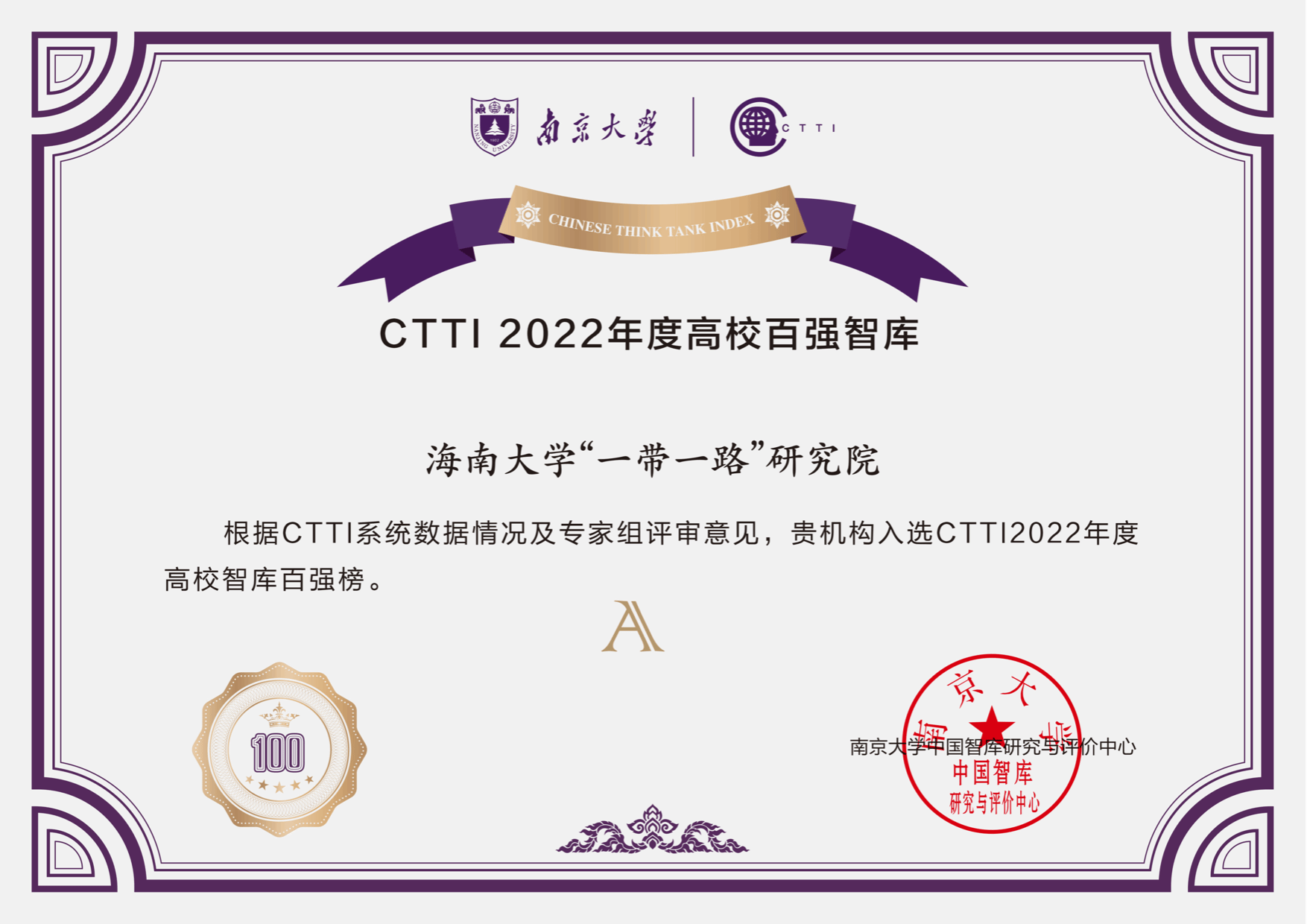 依托beat365中文官方网站“一带一路”研究院,通过聘请国内外知名专家学者,围绕“一带一路”倡议的推动实施、国家重大战略服务保障区与海洋强国、海南自由贸易港的建设等开展前瞻性研究。研究院有12篇内参获得省部级以上领导批示,其中6篇内参获得中央领导同志批示。研究院在“一带一路”领域全国最新专项排名中,媒体影响力名列全国第一,综合实力名列全国第五。研究院入选2022年度“中国智库索引(CTTI)高校智库百强榜”,获评为A等级智库。