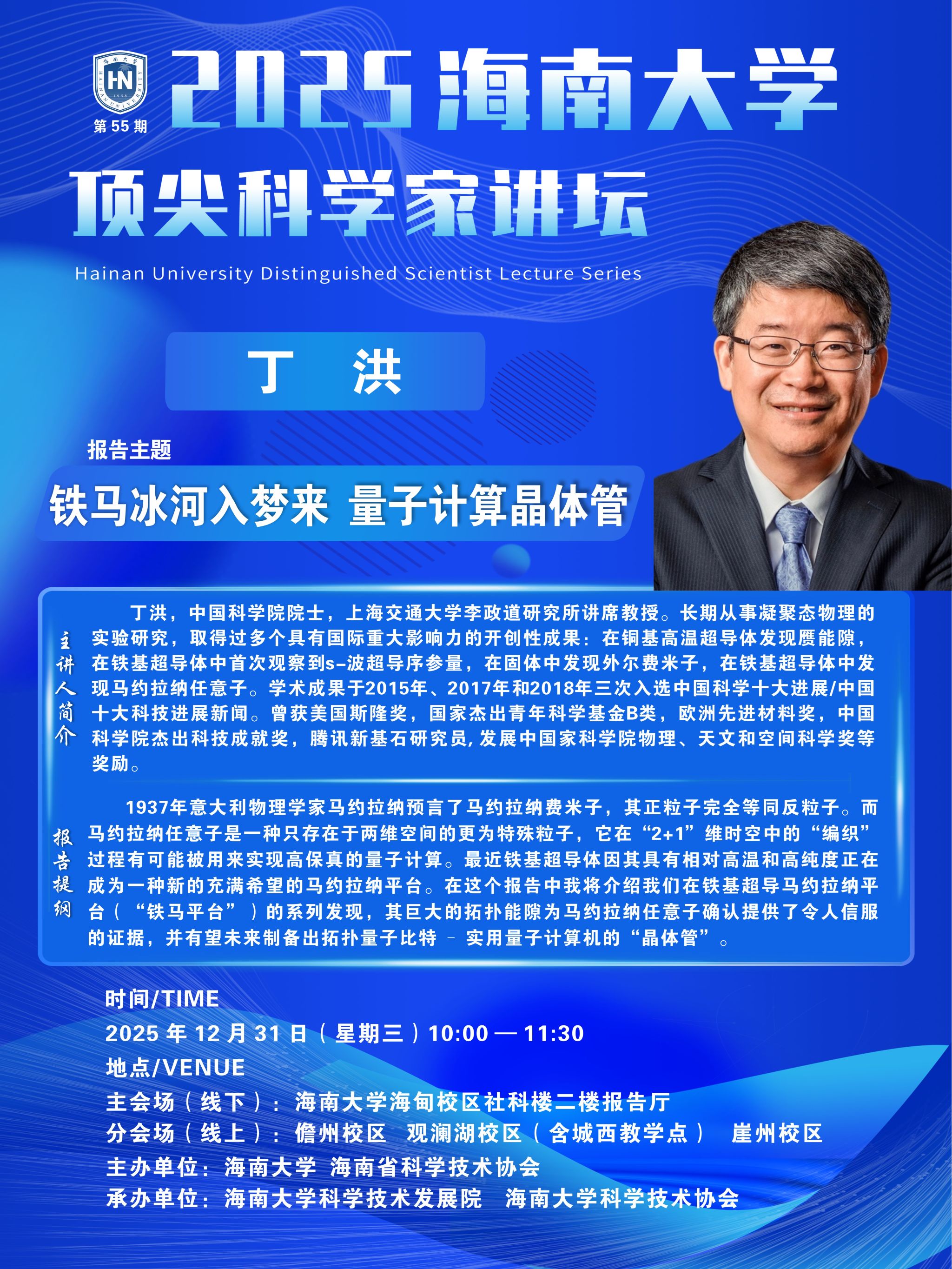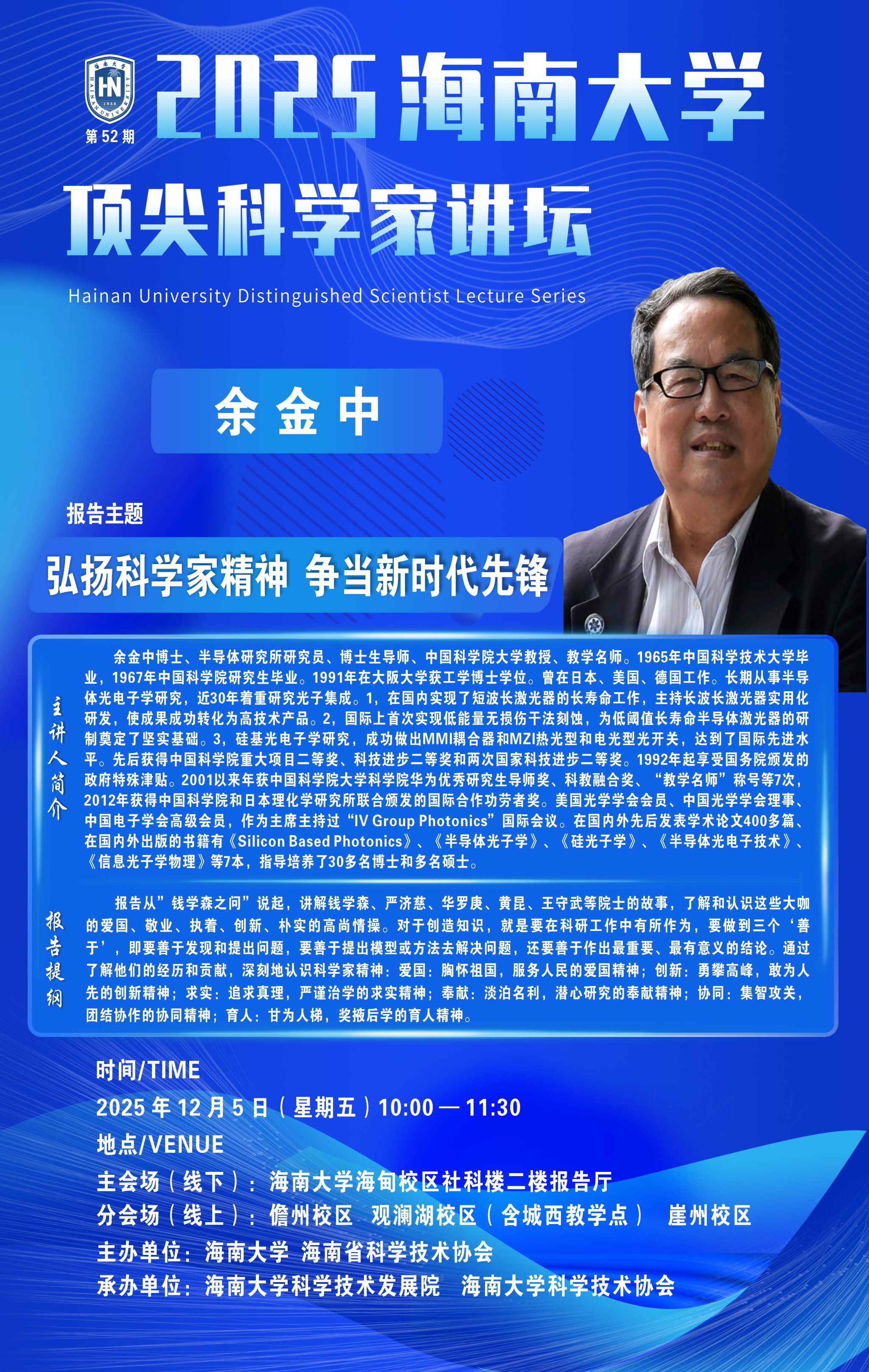 4月24日,2024年第一期顶尖科学家讲坛在beat365中文官方网站举行。讲坛由海南省科协和beat365中文官方网站共同主办,范围涵盖海南省高校科研院所、园区、企业。