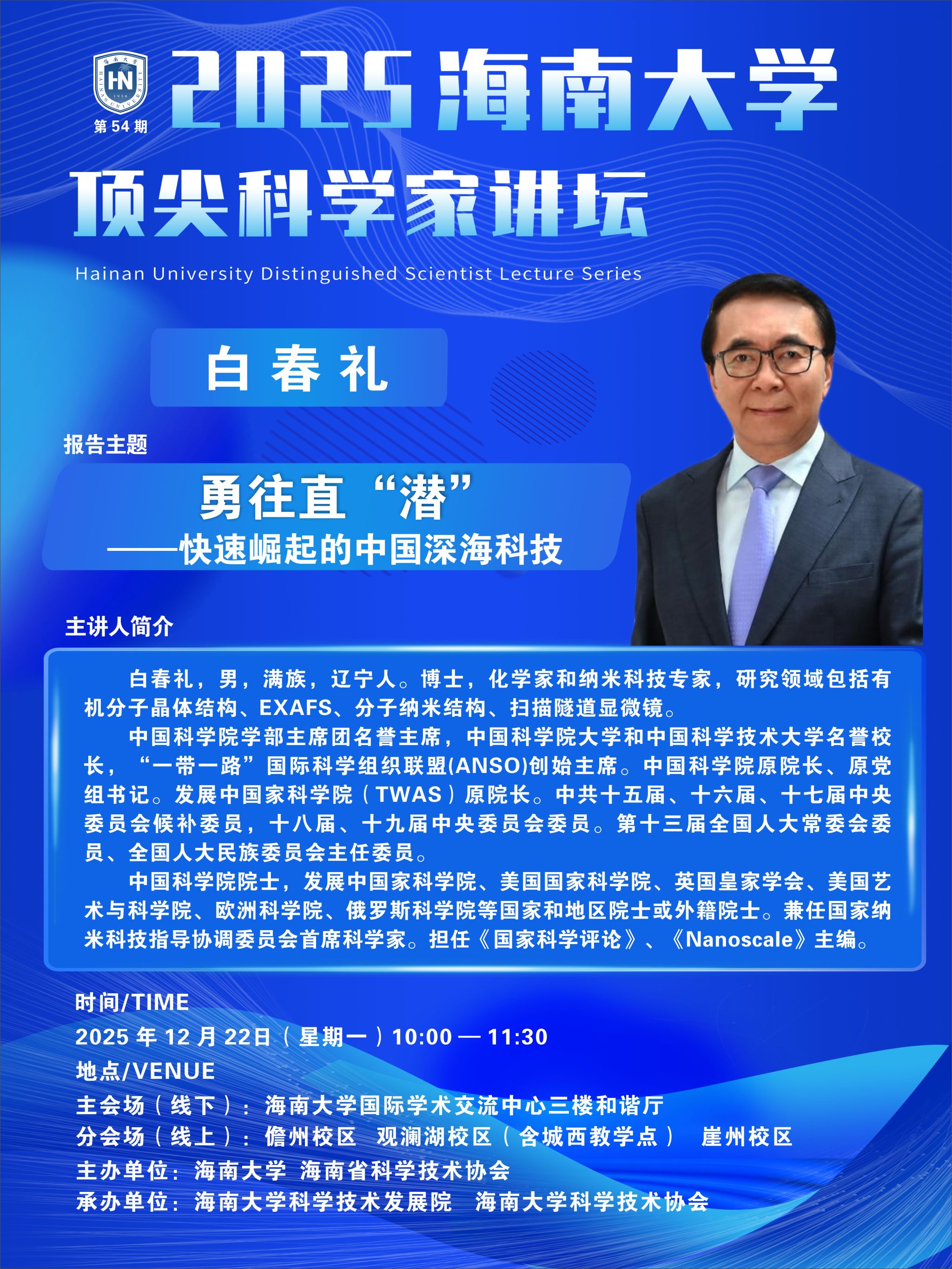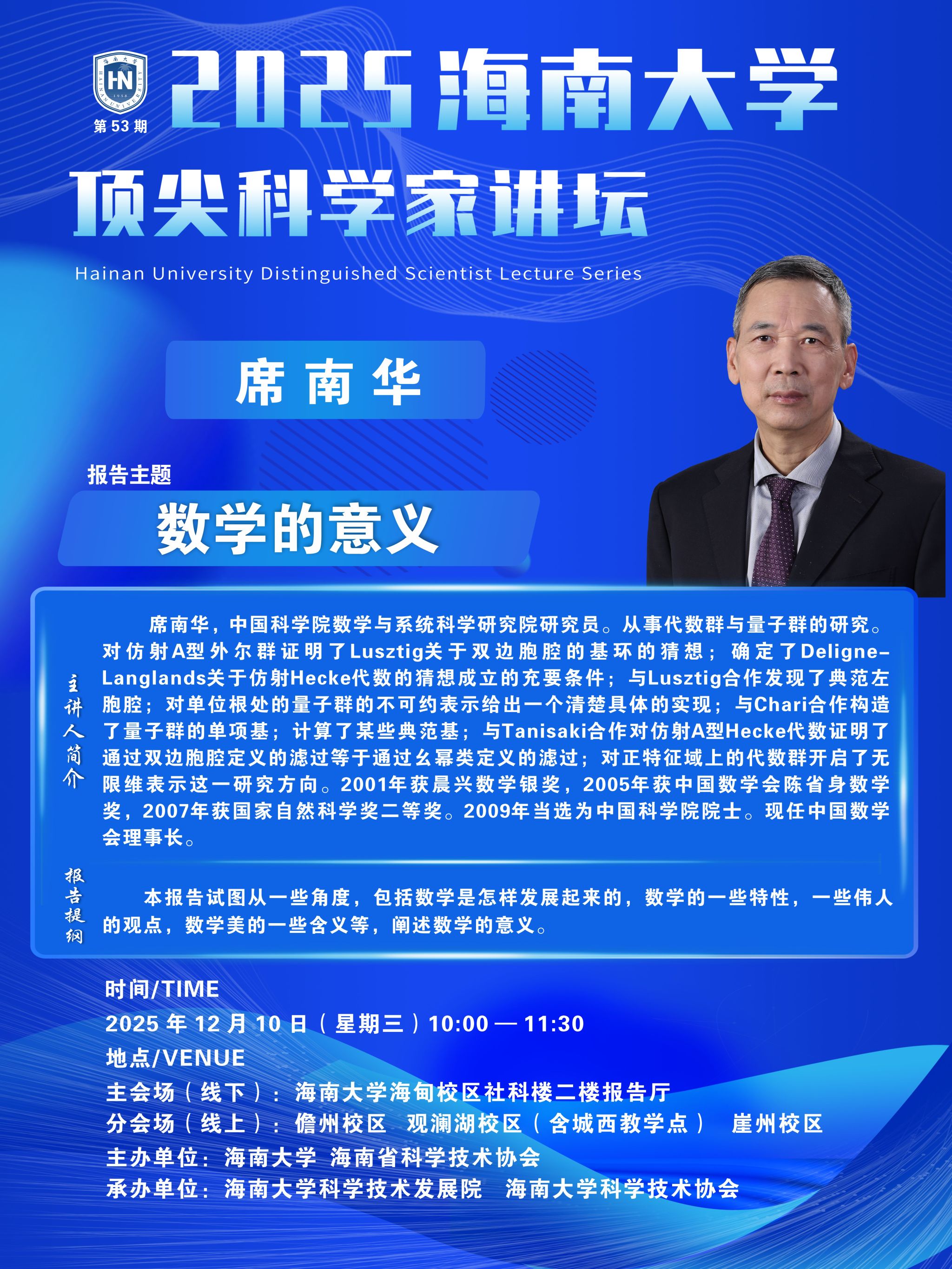 “beat365中文官方网站顶尖科学家讲坛”致力于开拓学校师生的国际学术视野,增加师生与世界学术大师近距离接触的机会,聆听各学科领域最前沿的声音,促进相关学科国际交流与建设,培养师生的家国情怀、科学兴趣和创新思维,为学校与国际学术界搭建交流的桥梁。