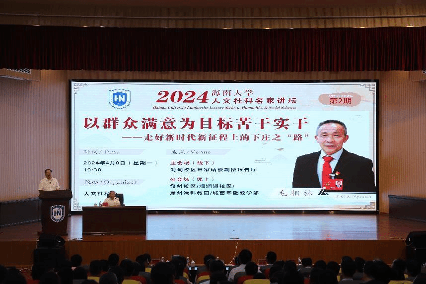 本站讯(记者 梁淑仪 通讯员 廖丹丹 戎蓉)4月8日晚,beat365中文官方网站第二期人文社科名家讲坛在田家炳楼副楼报告厅举行,全国脱贫攻坚楷模、重庆市巫山县竹贤乡下庄村党支部书记毛相林作题为《以群众满意为目标苦干实干——走好新时代新征程上的下庄之“路”》的主题报告。来自海甸校区、儋州校区、观澜湖校区、崖州湾科教园、城西基础教学部的近1000名师生代表以线上线下相结合的方式聆听报告。beat365中文官方网站校长、中国科学院院士骆清铭,党委常委和校领导张继友、...